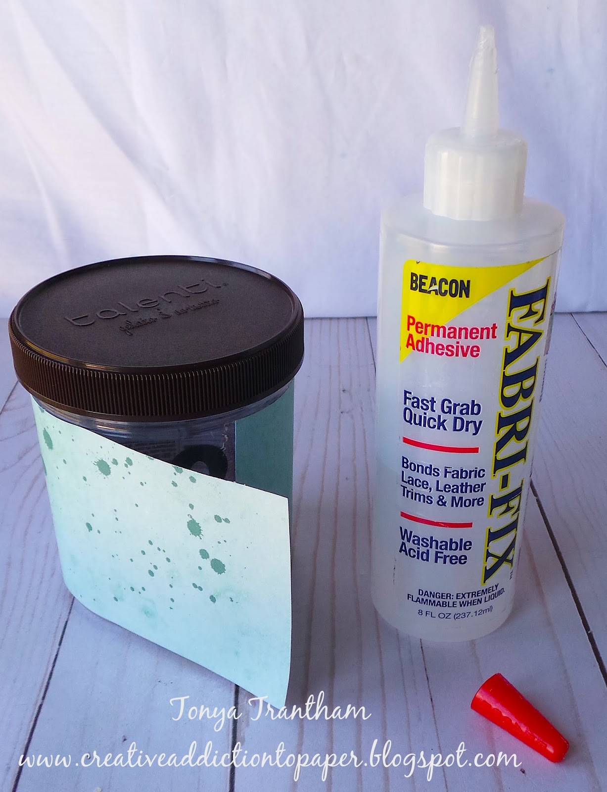 I pinched and folded both pieces of the doilies to create "fans" and I adhered the larger of the two to the container.
